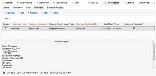 4. In the window that appears, choose the applicable description from the Interview Type lookup list (e.g., Interview or Interrogation).