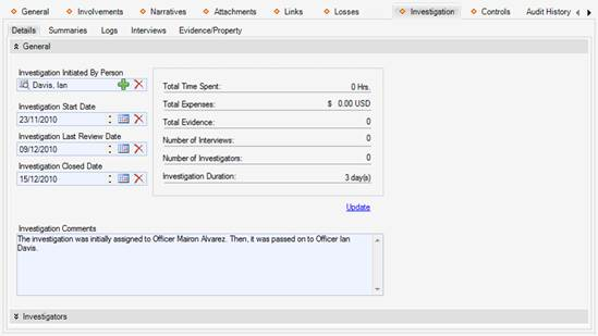 6. When the investigation is complete, enter this date in the Investigation Closed Date field.